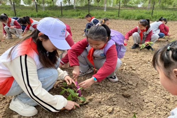 活动中,志愿者们先带领小学生们参观了菜趣园,共同欣赏了琳琅满目的蔬菜,学习了蔬菜的辨认方法、生活习性及种植技巧。然后,志愿者们给小学生们分发了菜苗及种植工具,指导小学生们有序地完成了蔬菜的种植,亲身体验劳动的魅力,领悟劳动的价值。