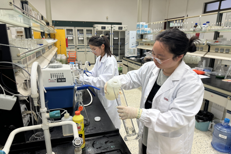 图为社会实践团成员实验室检测水质 记者 周华润 摄