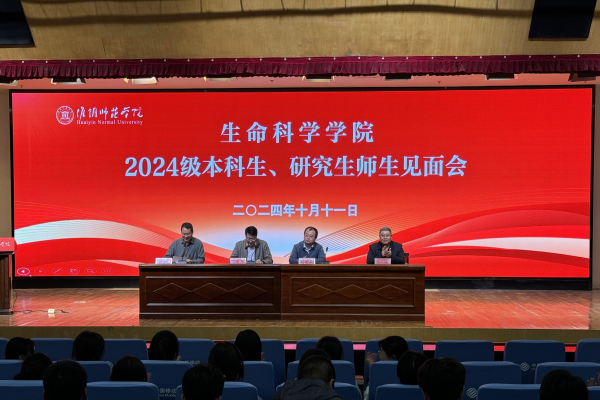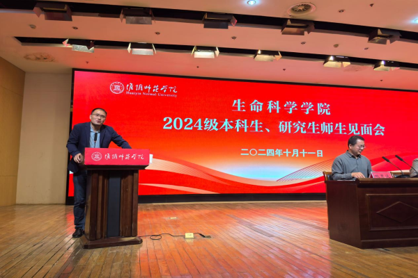 10月11日晚,生命科学学院在图书馆报告厅举办了2024级研究生本科生师生见面会。生科院党委书记殷占兵、院长刘廷武、党委副书记鲍恩波、副院长张曈、全体辅导员老师、2024级全体新生班主任老师以及2024级全体新生参加见面会。见面会由鲍恩波主持。