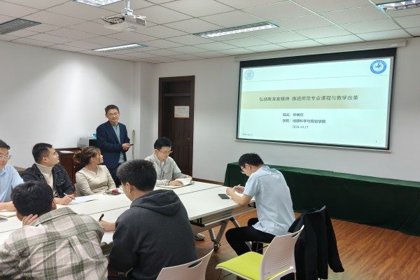 其中,来自地科院的仲崇庆老师以海洋地理学课程思政为例,做了课程思政融入专业课教学的报告,来自化院的张亭亭老师做了教育家精神融入实践教学方面的报告,来自生科院的孟凡龙老师和薛松老师分别针对师范生教育中科学家精神的培养、教师教育课程思政育人体系建设进行了报告。