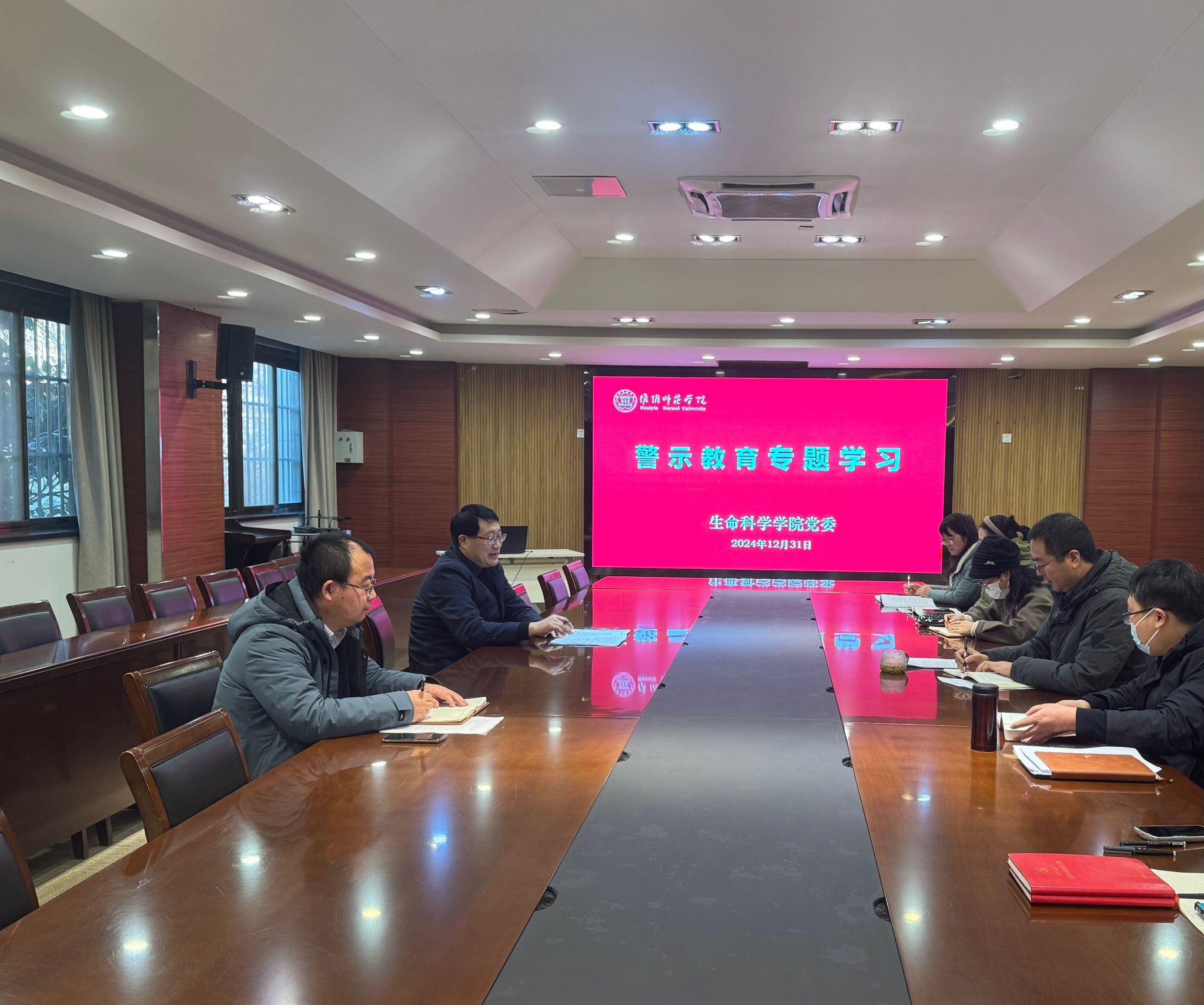 12月31日下午,生命科学学院党委在生科楼202会议室开展警示教育集体学习,集中学习省纪委警示教育相关材料。院党委书记殷占兵主持会议,院党委理论学习中心组成员、各党支部书记参加学习。