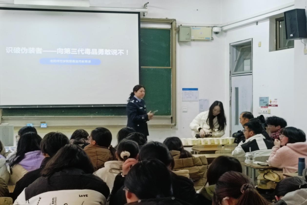 讲座由江苏省方强戒毒所的教导员主讲,他向学生们详细介绍毒品的种类、危害以及防范方法。通过毒品的种类展示、播放禁毒宣传片和相关视频,以直观的方式展示毒品的危害。并设置趣味问答环节,引导同学们用豆包AI智能搜索,加深学生对毒品的识别和了解,提升他们的识毒防毒技能。