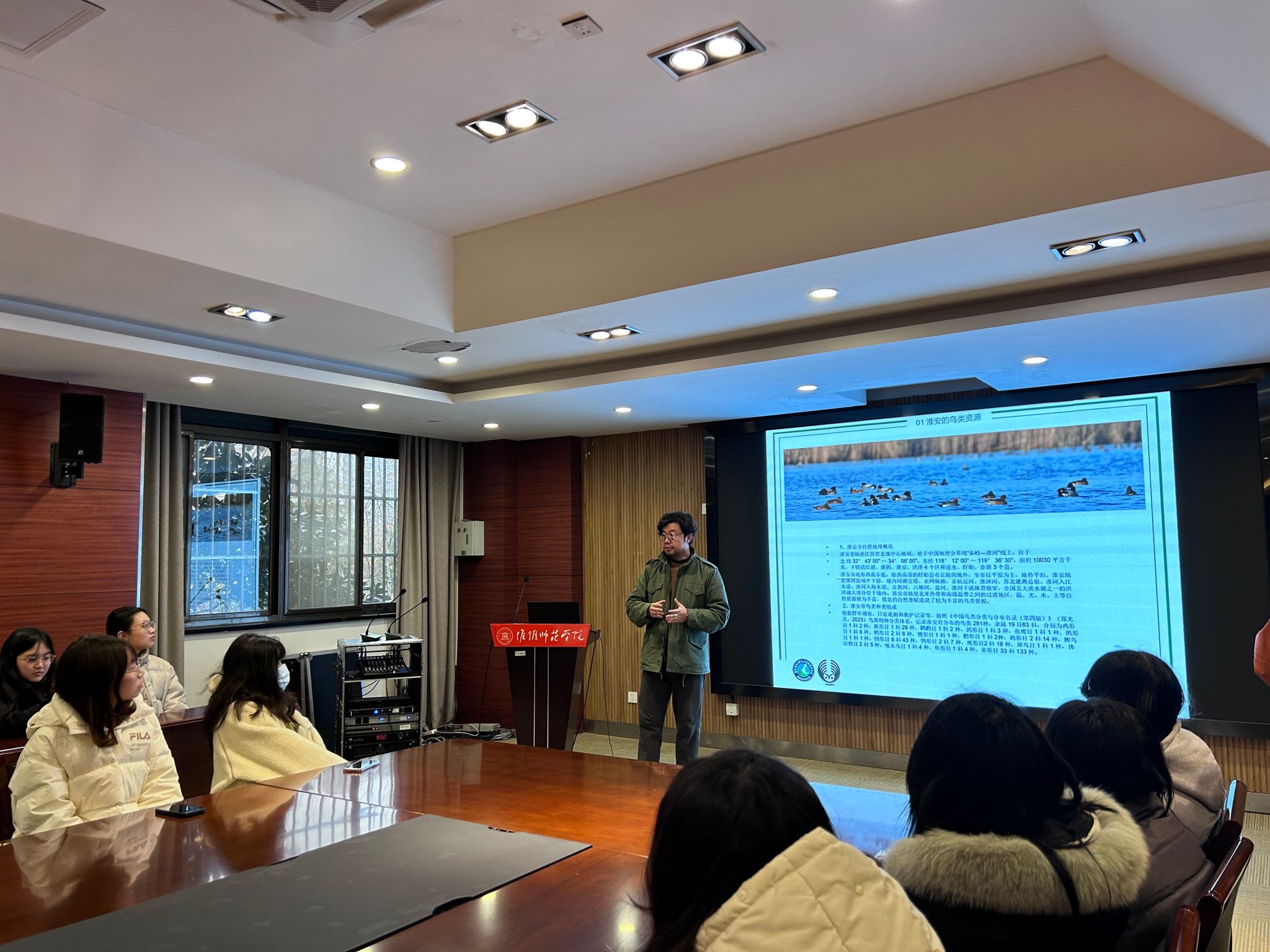 活动现场,淮安市自然资源和规划局籍荣生副局长向生科院学生捐赠了科谱图书《淮安野鸟?;び牍鄄狻?。中国湿地?;ば崂硎隆⒒窗彩赜胍吧参锉;ば岣被岢び嘈呛沧髁恕队肽窆采程富窗惨澳窆鄄夂捅;ぁ返目破捉沧?,余老师结合自己的亲身经历,以生动活泼、幽默诙谐的科普化语言,深入浅出地为同学们讲解了淮安鸟类资源的种类、分布及淮安的观鸟“地图”,精彩的讲座在展现缤纷的野鸟世界、开阔同学们视野的同时,也向同学们发起了倡导:文明观鸟、文明拍鸟、爱心护鸟、科学救鸟,争做生态文明的先行者、野生动植物的守护者。嘉宾和同学们还现场考察了生科院生物标本馆。