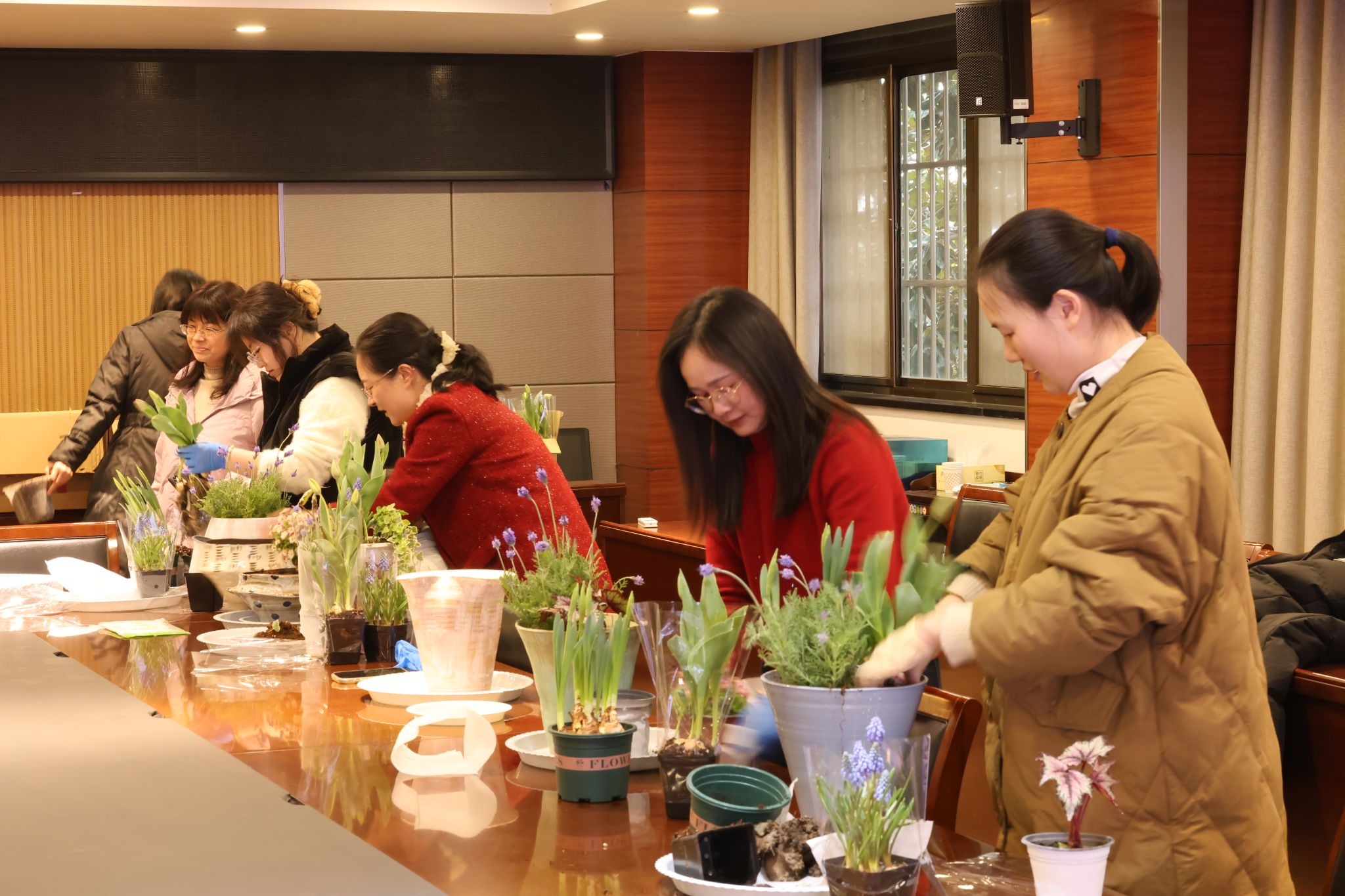 迟日江山丽,春风花草香。为庆祝2025年“三八”国际妇女节,进一步丰富教工业余生活,3月4日下午,生科院开展了一场主题为“花样年华、植得精彩”的创意植物盆栽活动。生科院全体女职工热情参与,共同体验盆栽DIY的乐趣。