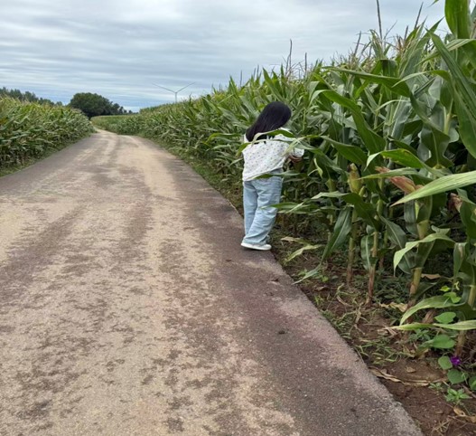 队员们深入田间地头,近距离观察玉米长势,亲身感受乡村农业生产现状,为后续了解当地农业发展、助力乡村产业振兴积累第一手资料。并根据调查以及知识积累为村民提出增产的可行政策。