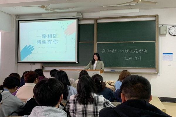 4月9日下午,生科1901班全体同学利用课余时间在晚自习教室举行了心理主题班会。班会由心理委员吴梦倩主持。班会旨在引导每位同学常怀感恩之心,用心感受生命和生活之美好,积极分享身边感动自己的事迹,动员学生做出感恩行动。