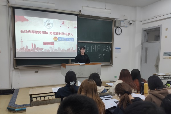 在团支书的引导下,班级中参与过志愿者活动的孙飞宇、潘晋珩、唐祯韬等同学上台分享了自己在志愿者服务活动中的所见所闻和感受。之后,团支书也给同学们观赏了几个志愿者服务精神的视频,同学们也都有感而发,表达了自己对服务精神的见解。