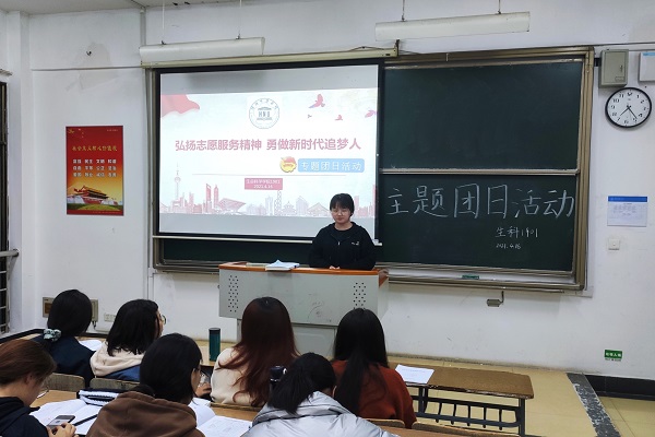 为积极践行以德为行,以学为上的理念,为进一步倡导志愿精神,强化大学生思想道德素质和志愿服务精神,争做优秀志愿者,增强大学生奉献服务精神,创建和谐、文明、美丽校园。生科1901班积极响应学校号召,在晚自习教室进行了团日活动。