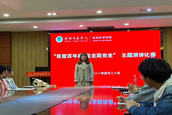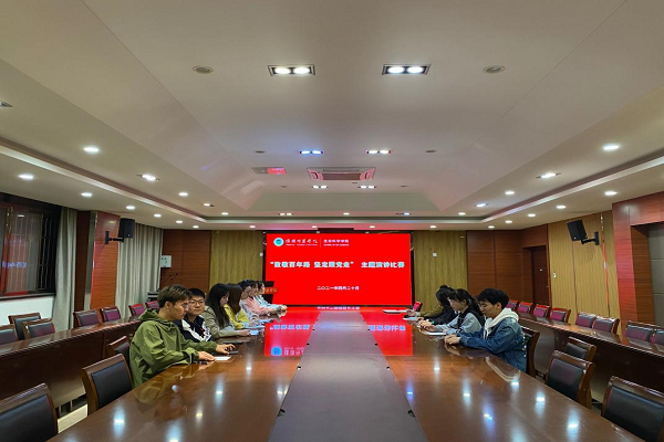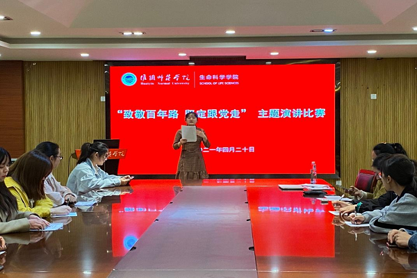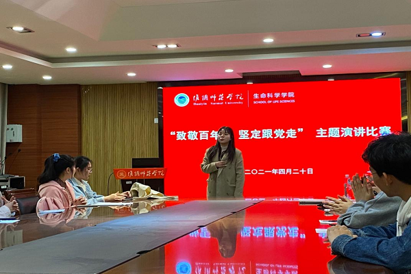 2021年4月20日,我院在生科楼202会议室举办了“致敬百年路,坚定跟党走”的主题演讲比赛。比赛由高翔翔老师主持。比赛旨在让当代大学生即新时代的新青年,树立坚定跟党走的理念,坚定理想信念,紧密地团结在以习近平同志为核心的党中央周围,努力做走在时代前列的奋进者、开拓者、奉献者,用青春和汗水谱写中华民族伟大复兴的美好篇章。