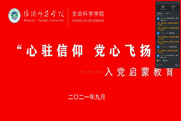 9月11日高翔翔老师为突出加强理想信念教育开展“心驻信仰,党心飞扬”为主题的入党启蒙教育。高翔翔老师组织全体新生线上学习习近平新时代中国特色社会主义思想、习近平总书记系列重要讲话精神、周恩来精神。让学生深入了解,深刻体会党的内涵,党的思想。