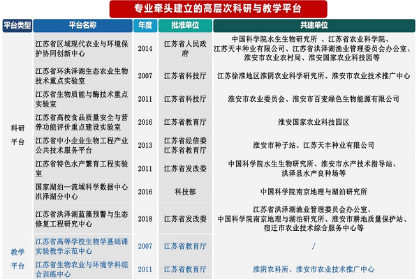 专业结合区域现代农业、环境保护等迫切需求,联合政府部门、企业等,牵头建立省部级科研平台8个、教学平台2个,以及15个校企联合培养基地,形成了以省实验教学示范中心的基础训练实验室、省学科综合训练中心的拓展实训平台、省重点实验室的科研创新训练室、省协同创新中心的“PPP”(Public-Private-Partnership)合作培养基地等为支撑的多元化协同育人平台。