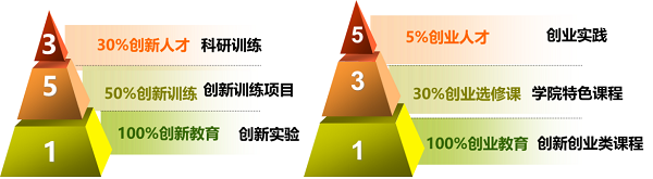 推行“153、135”创新创业教育模式,形成多层次、普及化的双创实践体系;构建“实验-实训-项目-竞赛-创新创业”五位一体递进式训练体系,增强学生创新创业能力。近五年,本科生在“挑战杯”“创青春”“互联网+”三大赛中表现突出,获国家奖4项、省奖11项。