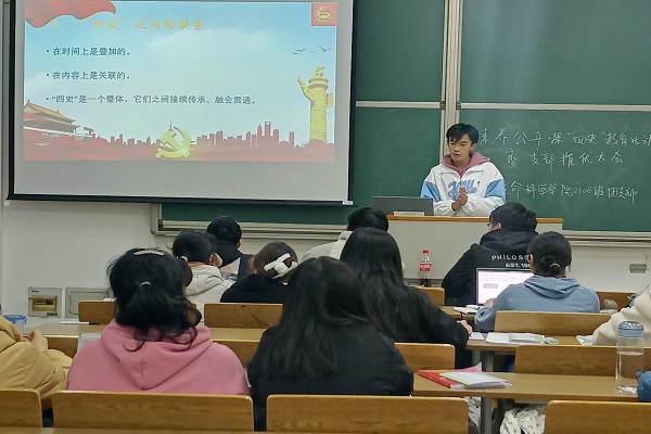 生科2108班团支部利用晚自习时间,团支部书记通过线下开展本次素养公开课暨“四史”教育活动。引导各个青年团员认识自我、铭刻历程、不忘初心的记忆之源、心路之本和奋斗经验。我们要坚持以习近平新时代中国特色社会主义思想为指导,深入开展党史、新中国史、改革开放史、社会主义发展史学习教育,进一步厚植对马克思主义的信仰、坚定对中国特色社会主义的信念、增强实现中华民族伟大复兴中国梦的信心,做到信仰如山、信念如铁、信心如磐,让初心薪火相传