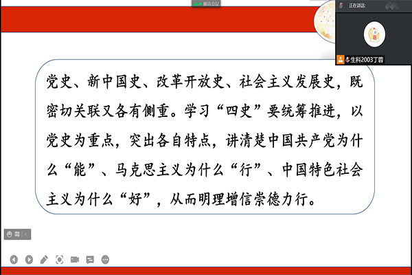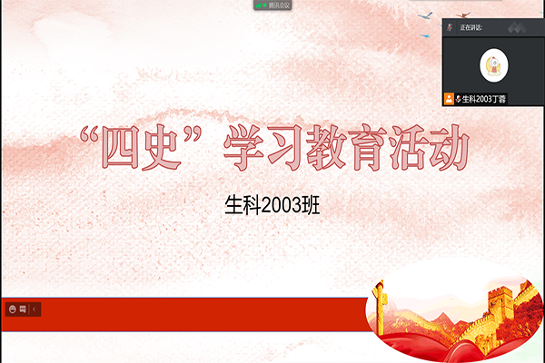 生命科学学院2003班于10月23日举办了线上四史的学习教育活动。首先先同大家讲述了什么是四史。