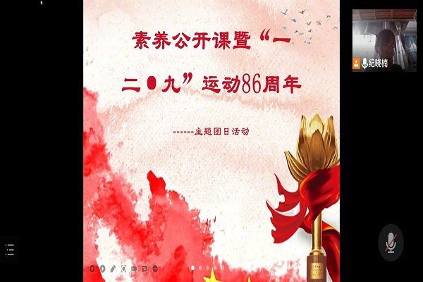 在建党百年之际,生科2101班在腾讯会议线上开展了素养公开课暨“一二·九”运动86周年主题团日活动,本次活动由2101班团支书纪晓楠主持,崔许满、刘梦圆、卢淼协助召开。主要向同学们宣传了一二九运动的思想与精神。