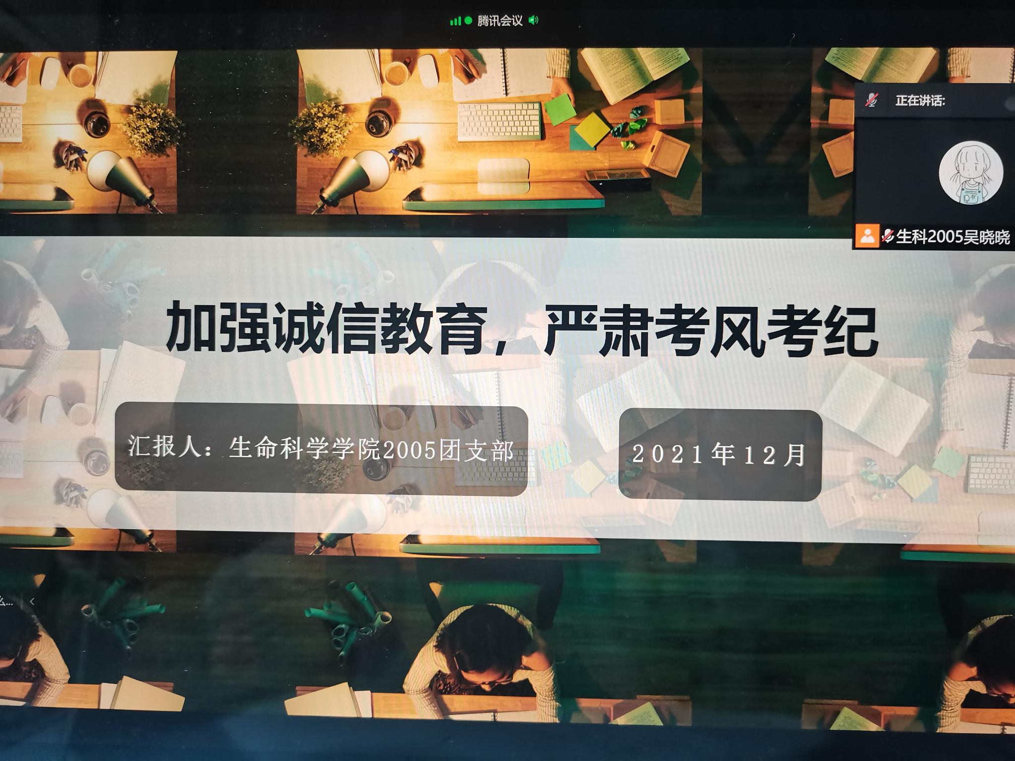 孟子曰:“车无辕则不行,人无信则不立”。抓好学生的思想意识,是加强考风考纪的切入点和关键点。在2021年12月9日,生科2005班召开了“加强诚信教育,严肃考风考纪”主题教育活动。