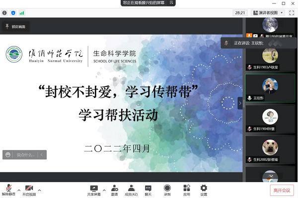 为建设学院优良学风,促进同学的交流分享与共同进步,努力强化思想引领,深化学风建设内涵,帮助同学们更好地完成学业,充分利用学院优质资源,积极发挥成绩优异学生的朋辈引领作用,4月6日,生科院开展“封校不封爱,学习传帮带”学习帮扶活动。