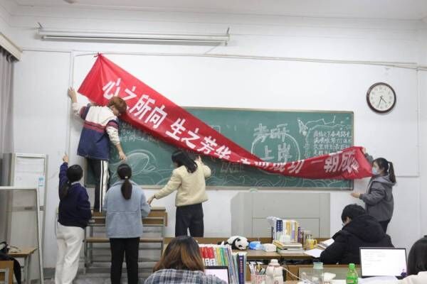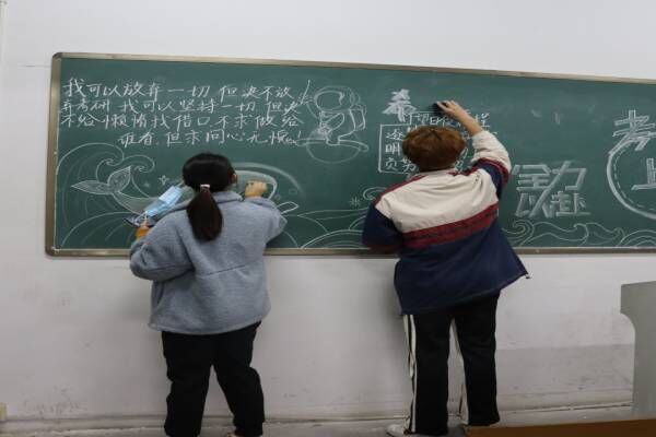 会议结束后,支部党员身体力行对考研教室进行了清扫整理工作,党员同志还对教室的黑板进行了板报美化设计,“心之所向,生之芳华……”,一句句鼓励的话语在寒冷的冬天给考研学子带去了许多温暖,党员同志们也在实际行动中,将二十大精神与实际相结合,更好的为大众服务。