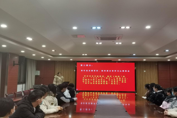 活动还邀请了优秀青年党员—国家奖学金、省三好学生获得者潘晋珩和陈玲莉分享自己的成功经验。经过相互交流学习,全体参会党员对照优秀青年找不足、明目标,回顾自己的入党初心,总结自己作为党员有何不足,展望未来如何做好一名党员,表达“青年党员奋进新征程”的决心。