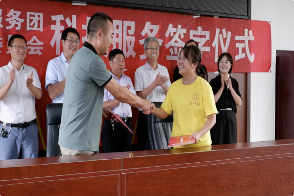 此图为蕈海食用菌服务团与义龙新区万屯镇下坝村签订服务协议 记者 余成美 摄