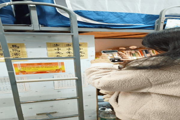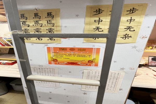 学习氛围是文明宿舍评比的重要加分项,不少同学在宿舍空白桌板上张贴了自己写的毛笔字硬笔字以及曾经所获得的奖项奖状,极大地展现了宿舍成员良好的学习氛围。