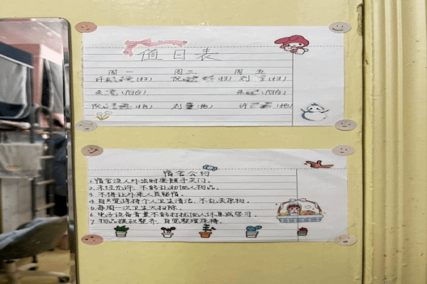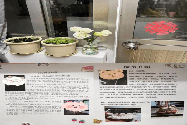 有的宿舍墙壁上张贴着周恩来总理“为中华之崛起而读书”的名言,展现了宿舍成员努力读书,报效祖国的伟大理想,还有制定的宿舍公约,同学们用来装点宿舍的花草以及同学们自己写的宿舍成员的自我介绍。