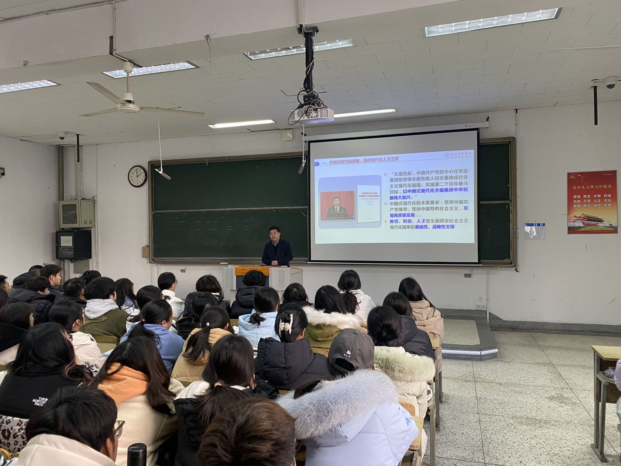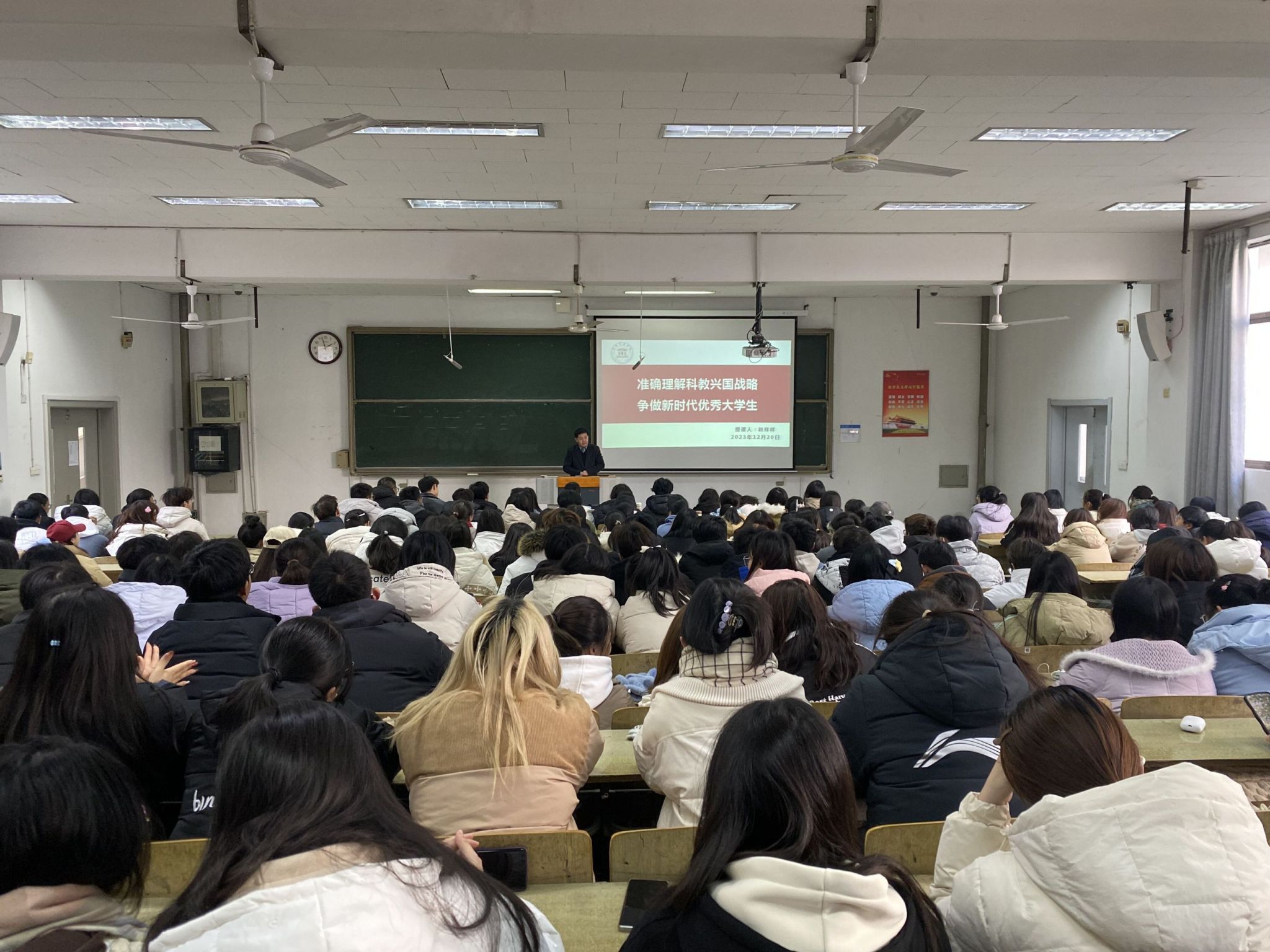 12月20日下午,在崇文阶103,副校长赵祥祥围绕“准确理解科教兴国战略,争做新时代优秀大学生”的主题,为生科2023级学子上了一堂形势与政策课。