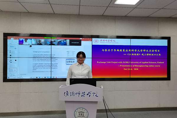 2020年10月12日晚,我校与芬兰于韦斯屈莱应用科学(JAMK)大学师生互访项目的Bioengineering全英文国际课程正式在线开课。